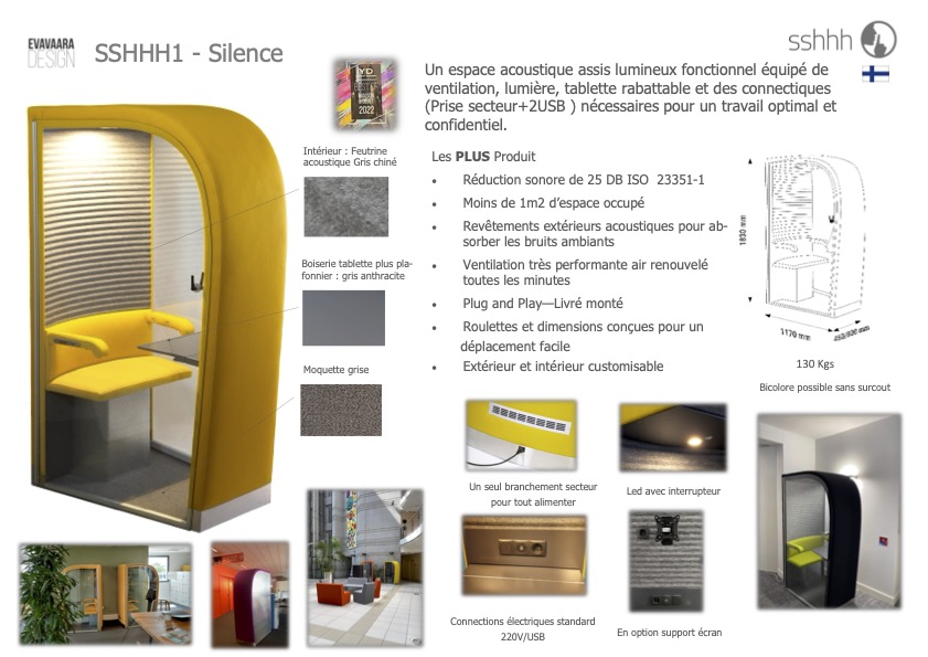 SSHHH1 : Une bulle acoustique individuelle, permettant de s’isoler lors de Phone call, audio ou visio, tout en gardant un confort unique.