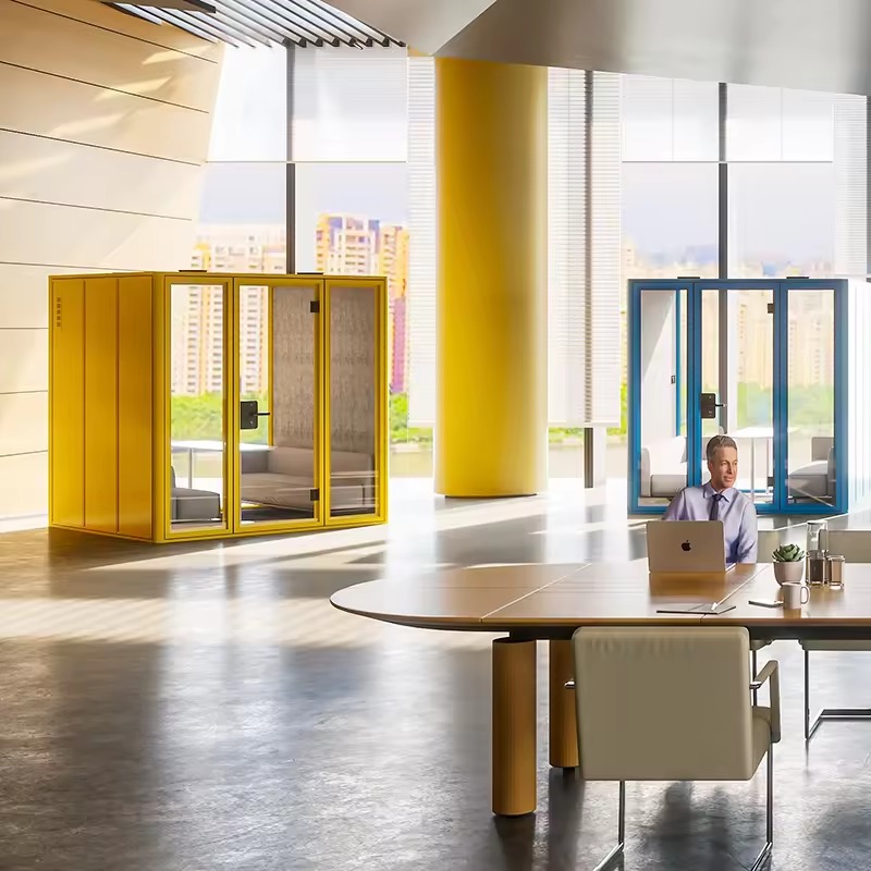 TYPE H L: Une Phone Box conçue pour 4, offrant un espace de réunion insonorisé pour collaborer dans le calme.