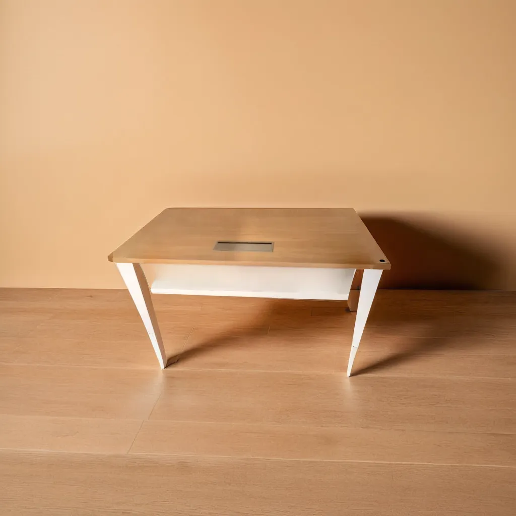 Bureau droit, pied origami blanc avec voile de fond en tissu. Dimension 160 x 80 x 72