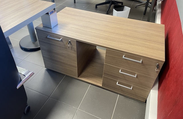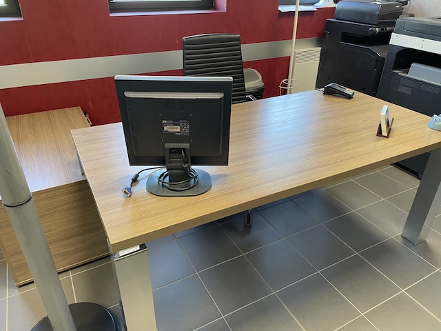 Magnifique bureau de direction avec retour meuble, epaisseur plateau 40 mm, Piètement chrome. Etat neuf