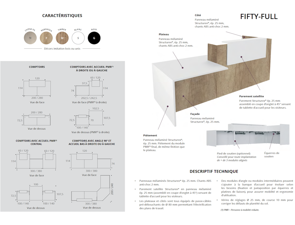 • Les plateaux et côtés sont tous équipés de passe-câbles